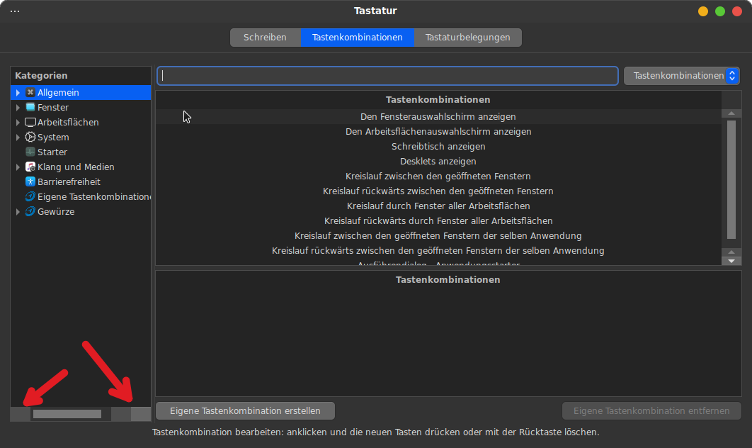 Einstellungen -> Tastatur -> Tastenkombinationen