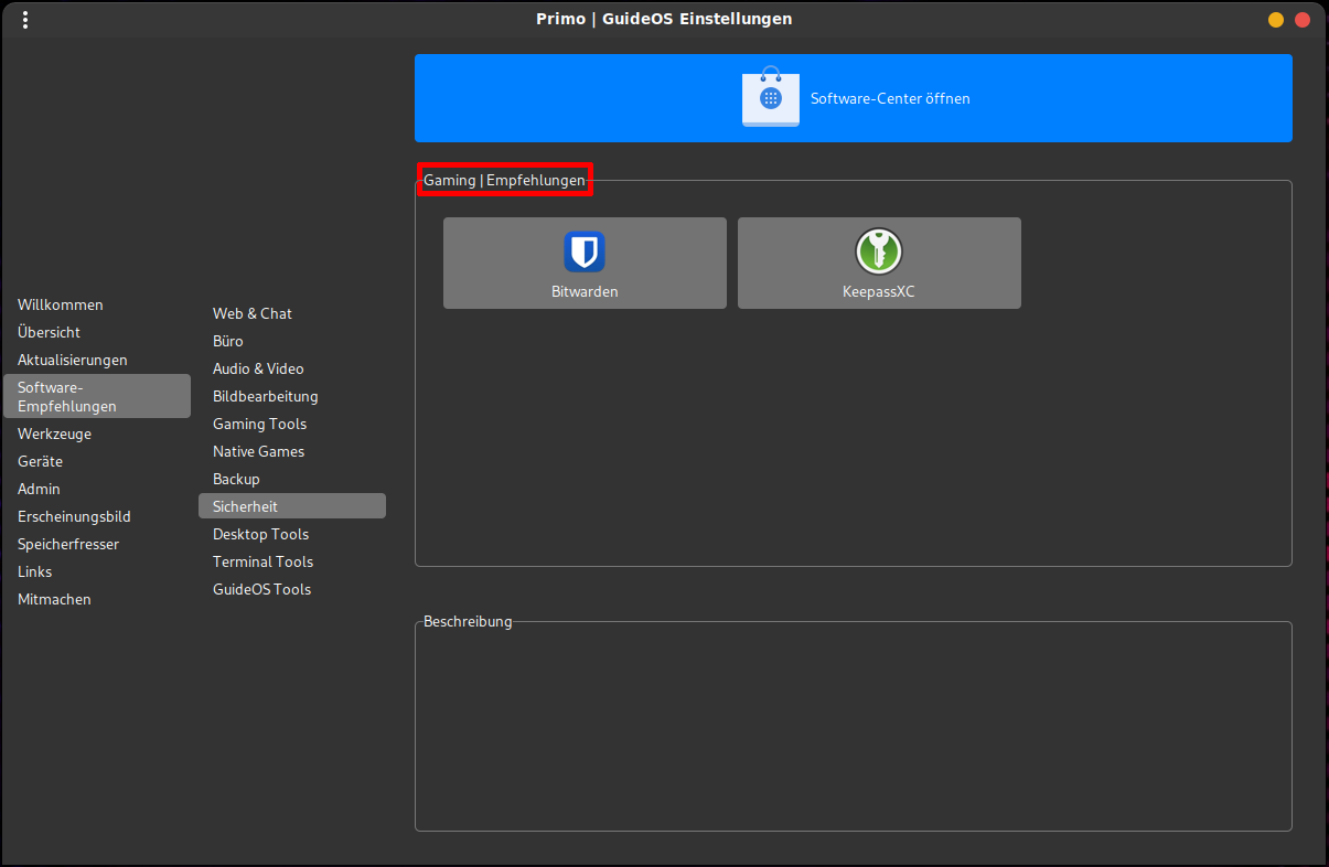 Kategorienamen von Gaming Tools, Native Games, Backup und Sicherheit sind falsch. Gaming Tools und Native Games Reihenfolge im Code von /opt/primo-di-tutto/src/tabs/software_tab.py falsch herum